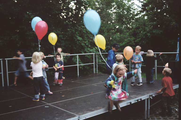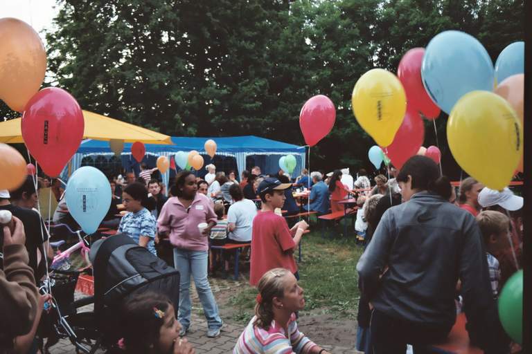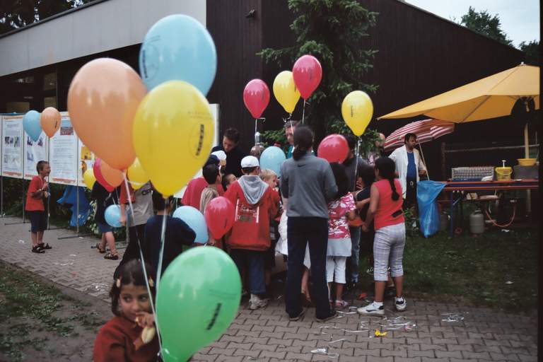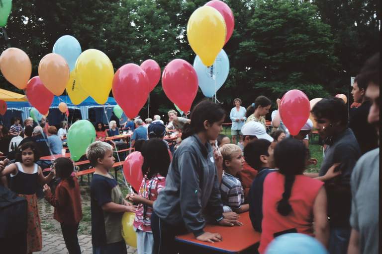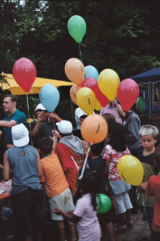 Die Kinder bekamen jetzt endlich die bunten, mit Helium gefüllten Ballone geschenkt.