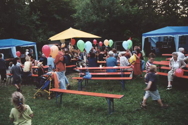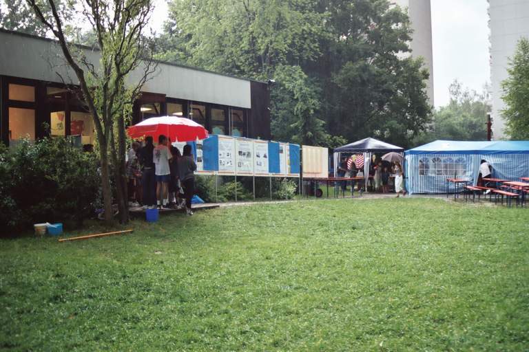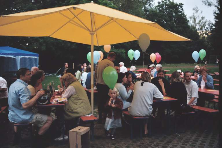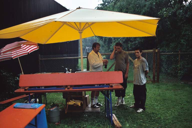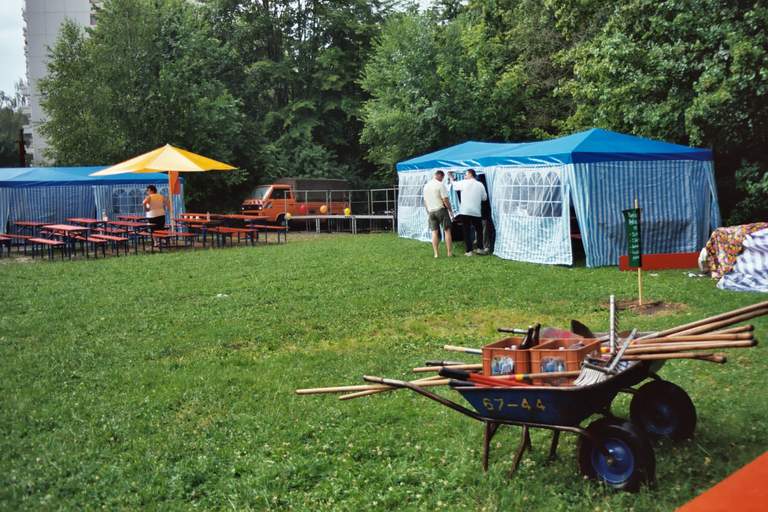 Die ersten Bilder vom Fest sind unmittelbar nach Beginn des ... ... Wolkenbruchs aufgenommen worden, vor dem wir alle ...  ... zusammen in den Pavillon geflüchtet waren. Da war es dann zwar etwas eng ...