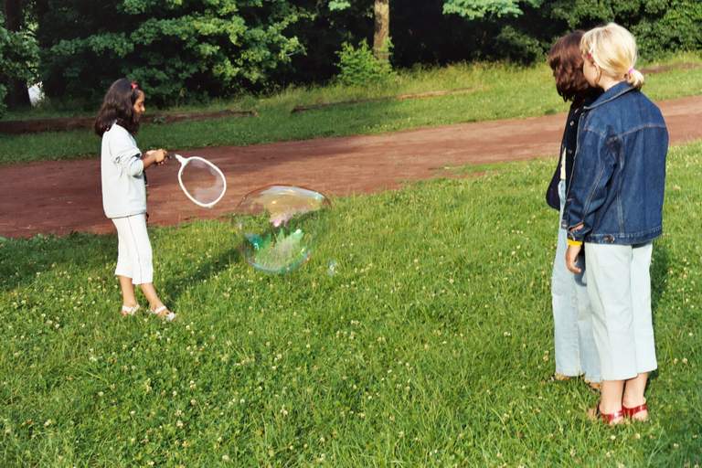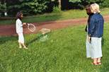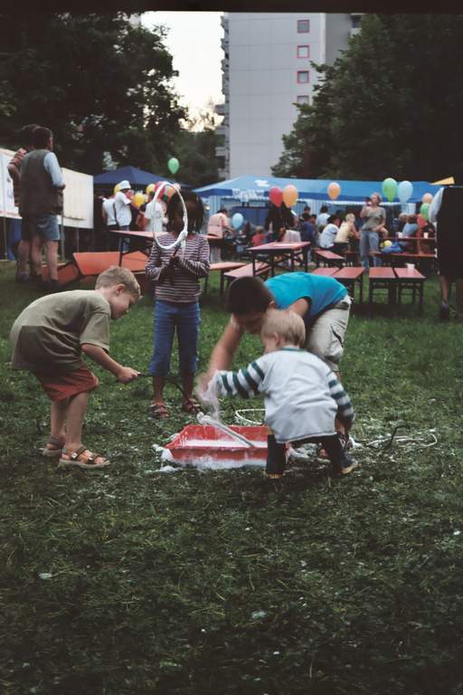 Das Kinderprogramm der Kindertagesstätten konnte wieder weiter gehen. Zum Beispiel mit großen Seifenblasen Die man sogar wieder einfangen konnte.