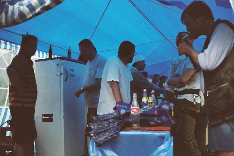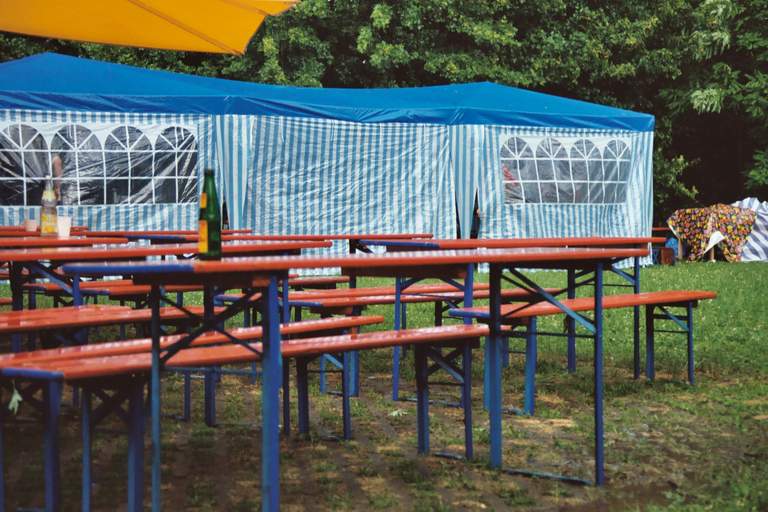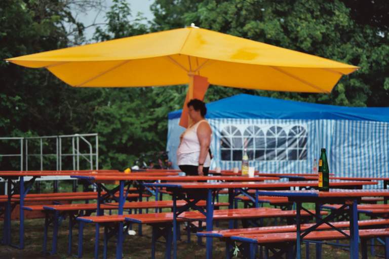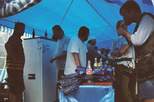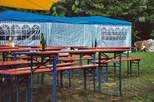 Nicht weniger geduscht der unser Grillstand! Im Verkaufszelt ging es munter weiter. Unterm Schirm war man aber langsam doch ein wenig alleine.