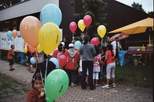 Das war natürlich eine große Attraktion. Herr Wunsch füllte Ballone, was das Zeug hielt.  Die sorgten schnell für ein buntes Bild auf dem Platz vor dem Pavillon.