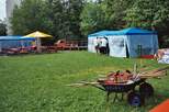 Als es dann so richtig schüttete, wurden die Luken dicht gemacht.. Der Waffelstand vom Jugendtreff und das Kinderprogramm fielen vorerst den Fluten und den Stürmen zum Opfer. Die Pavillons mussten wir mit vereinten Kräften daran hindern, Flugstunden zu nehmen.