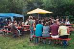 Auch der Grill wurde ausschließlich von freiwilligen Helfern betrieben. Die Bänke füllten sich wieder, sodass wir sogar noch weitere aufstellen konnten. Auch die übrigen Brötchen fanden jetzt Ihre Abnehmer.