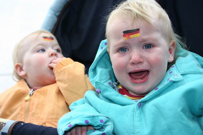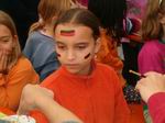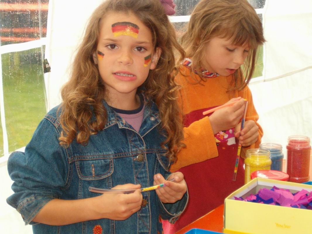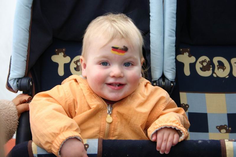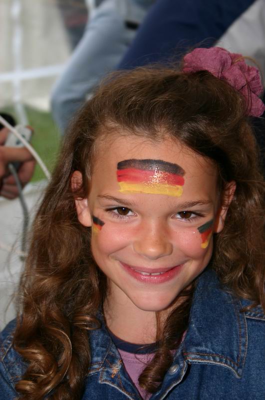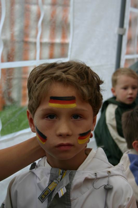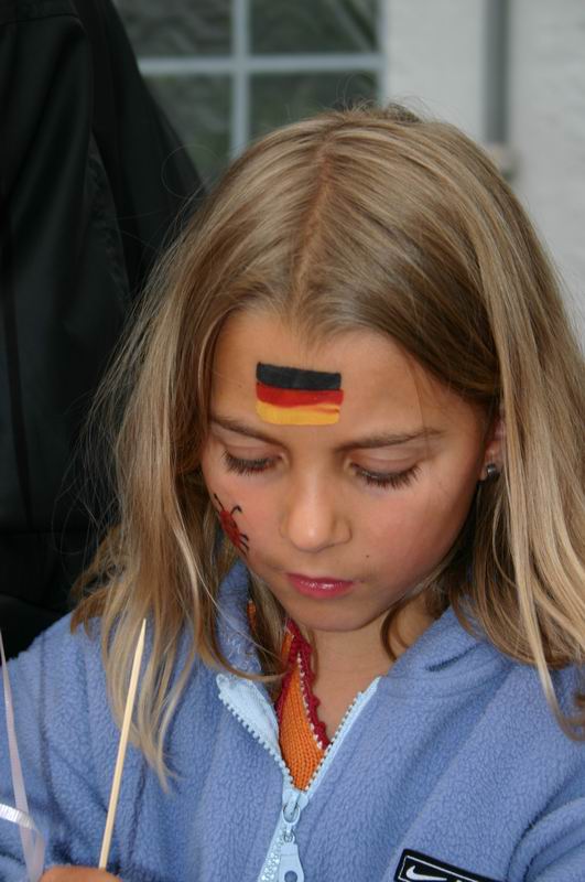 "He! Ich bin noch nicht fertig! Kannst nachher nochmal kommen!"  Da wird gleich das ganze Gesicht geschminkt! "Mir reicht eine Flagge!"