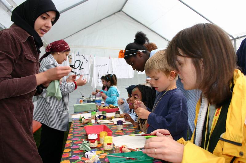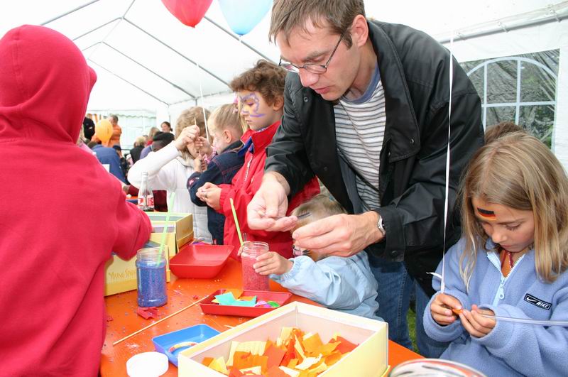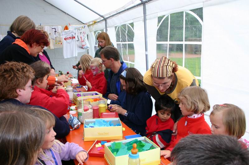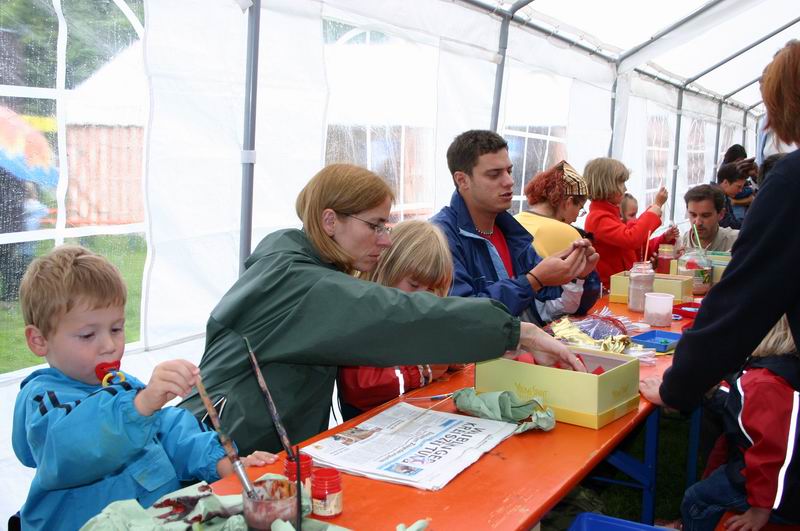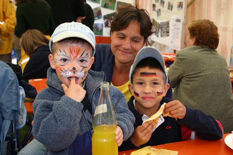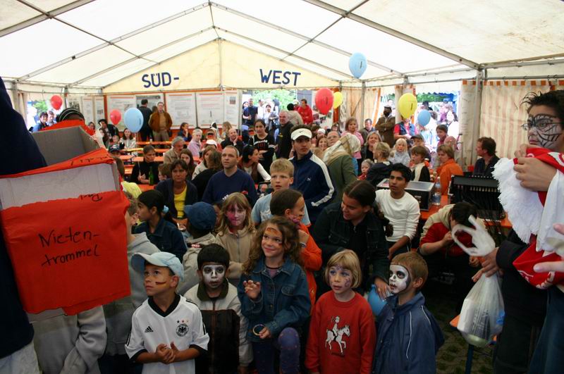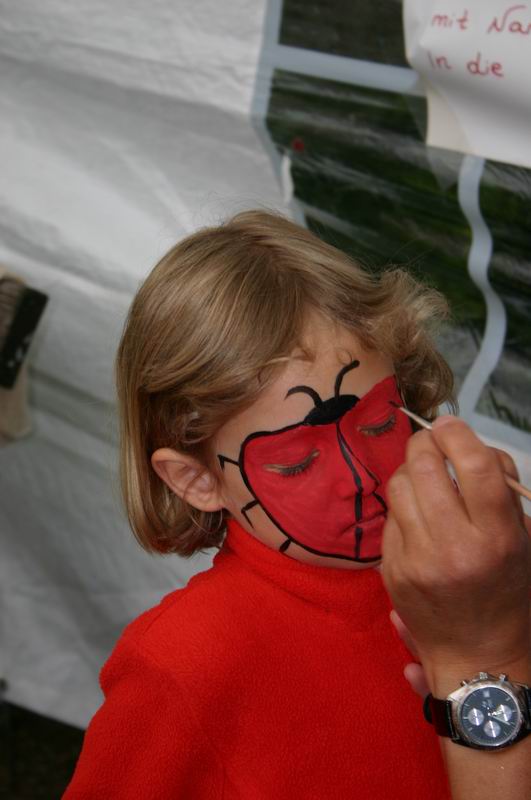Na, kleiner Kater?  Der Andrang im Schmink- und Bastelzelt war ... ... immer sehr groß.