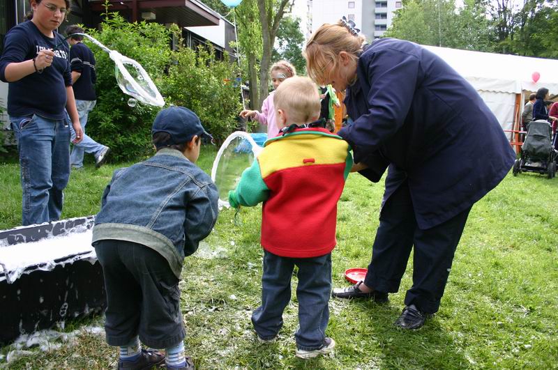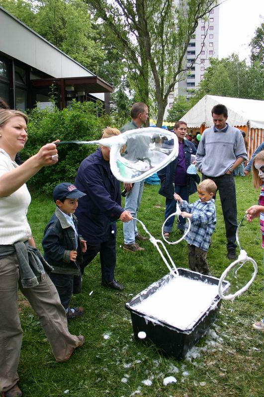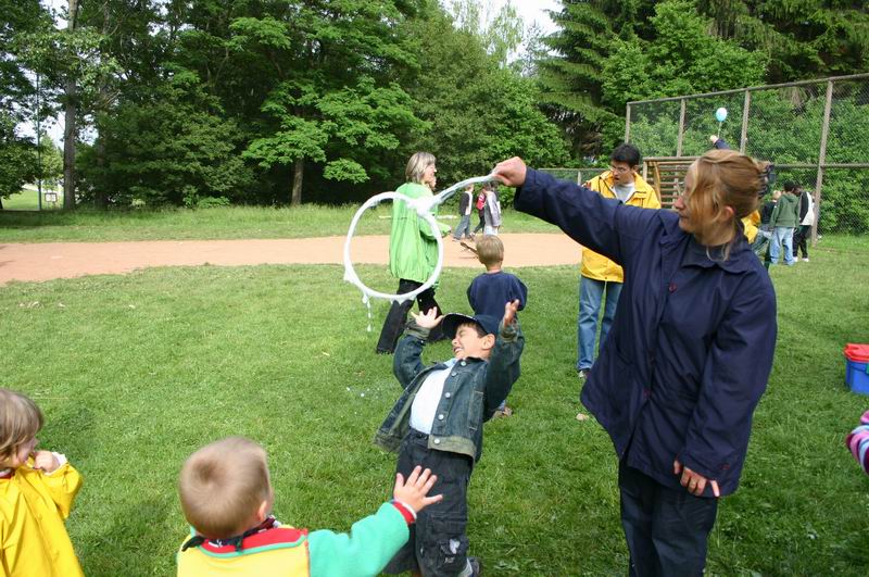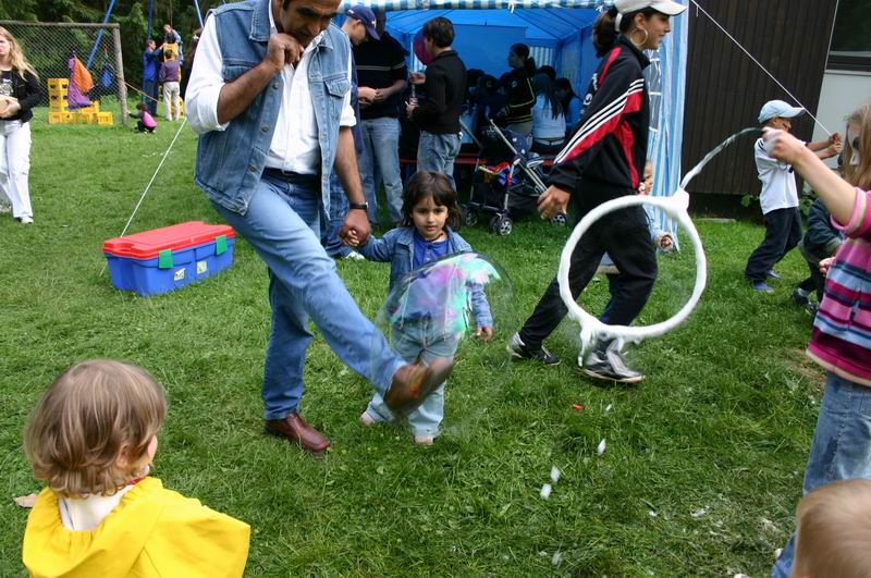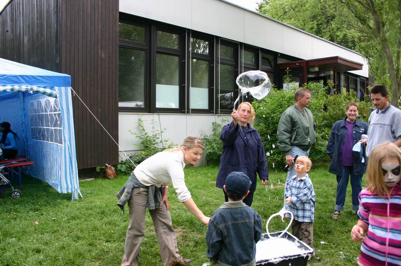 Während es im Zelt weiterging, ...   .... war auch auf der Wiese einiges geboten. Riesige Seifenblasen konnten da gemacht werden.