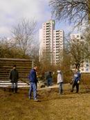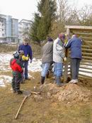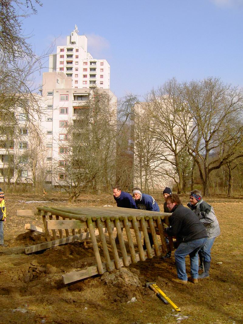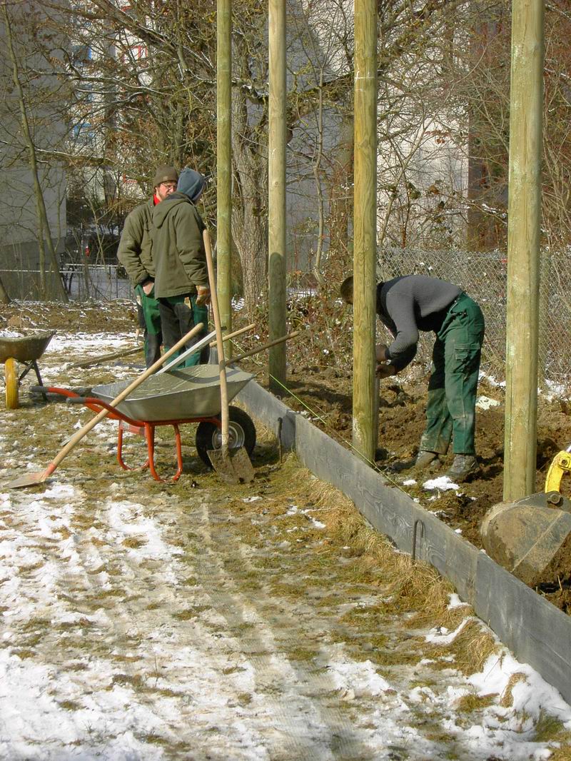 gebeten, damit auch gleich die Fundamente für die beiden Tore aus