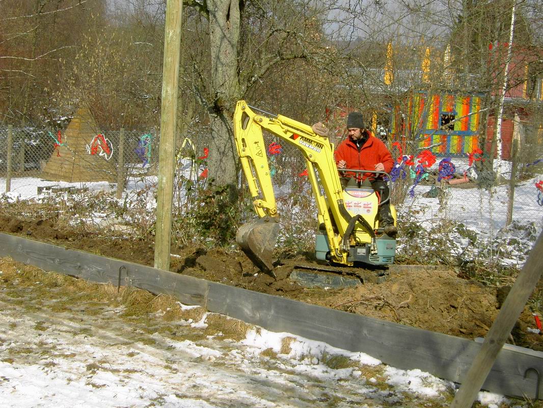 einen kleinen Bagger mit. Wir hatten dann darum