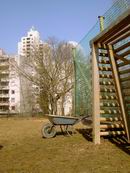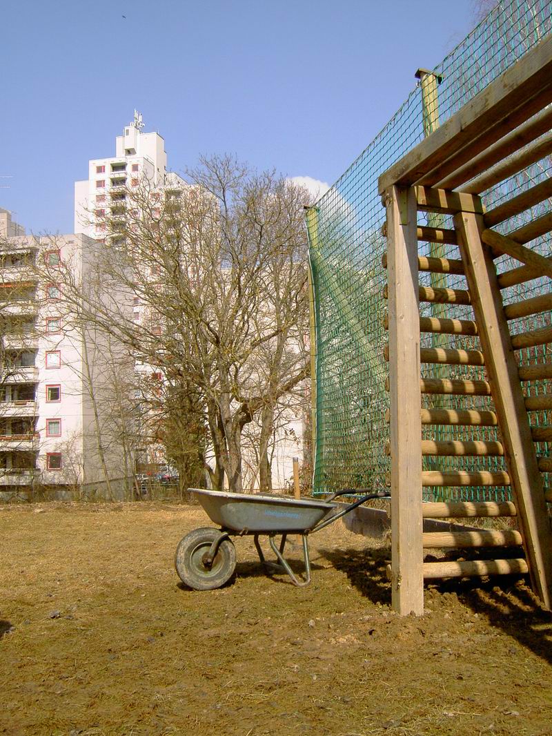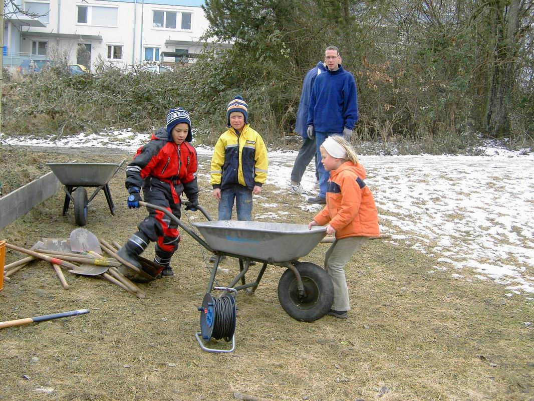 Schubkarre da, um die Tore vom alten zum neuen Platz rüber