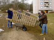 Mit Schubkarre und 7 Mann ran ans Tor.