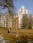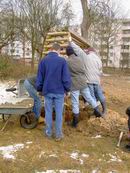 Fundamente. Und steht's grade? Nö, also wieder raus aus den