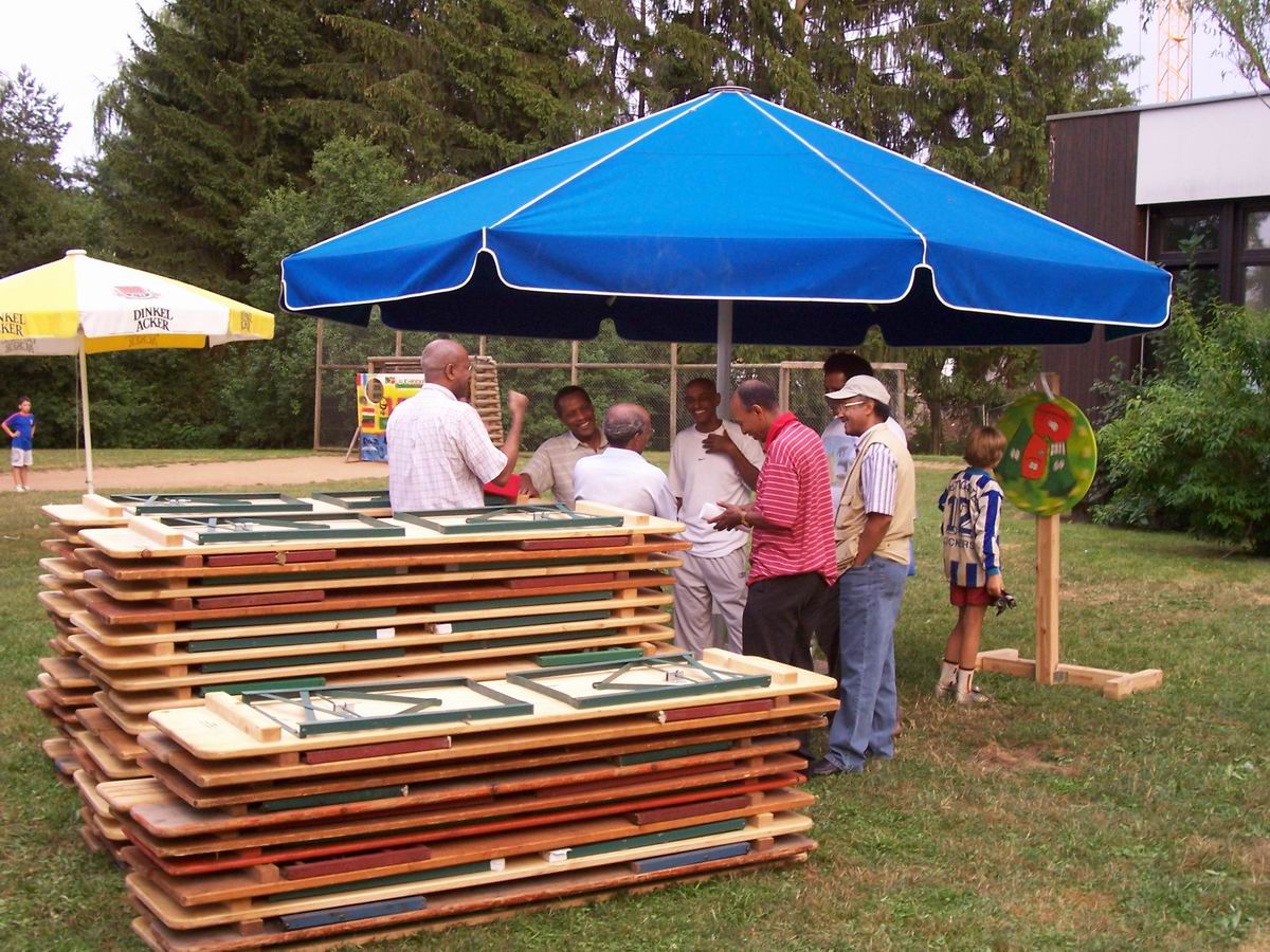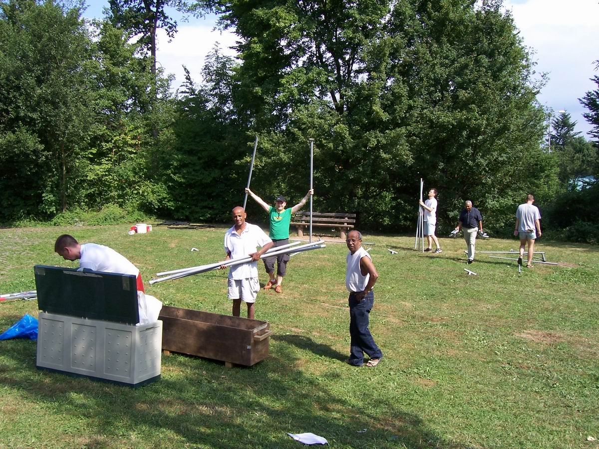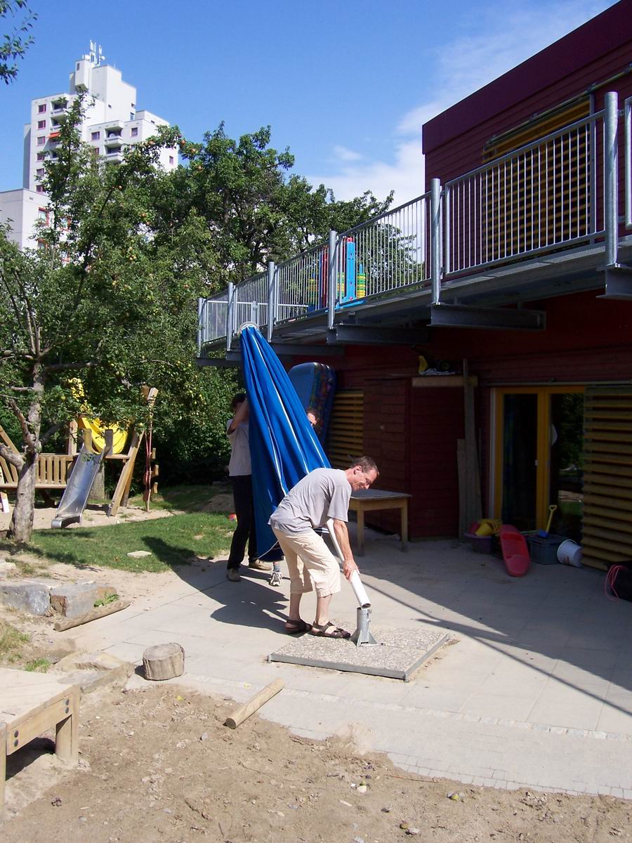Viele Helfer des Eritreischen Kulturvereins  ... leisten wieder tolle "Abbauhilfe". Die Schirme werden wieder in den Gärten der KITAs aufgestellt.