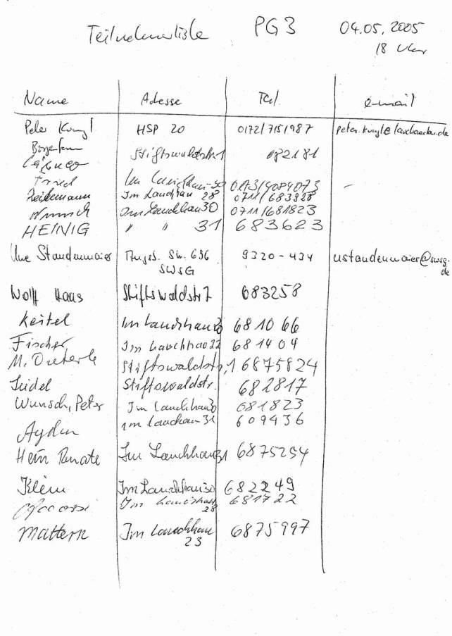 Peter Kungl, 13.09.2005, Teilnehmer siehe letzte Seite 4
