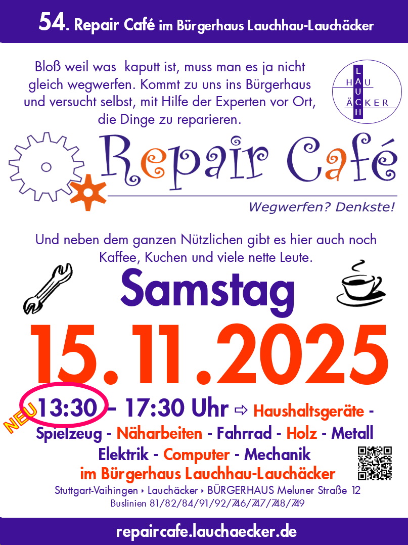 REPAIR CAFE Lauchhau-Lauchäcker --- Alle Termine in 2026